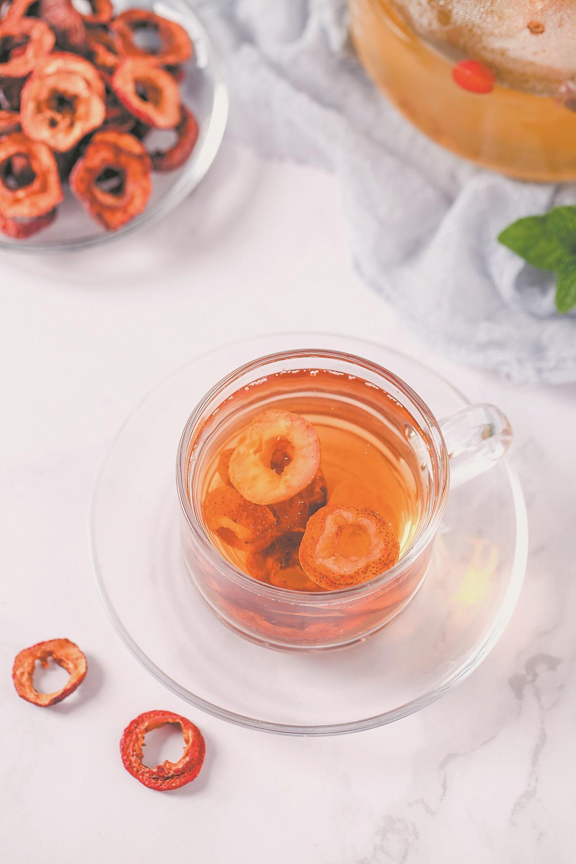 山楂茶能促进胃酸分泌,帮助肠胃消化。