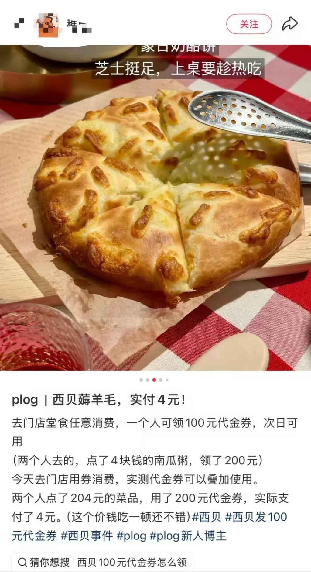 降价之外,西贝还放了个大招:发100元无门槛代金券,10月8日前领,31日前能用,这招效果咋样?有网友晒单,俩人吃了200元,用完券实付0元;还有人只花了几块钱。双重优惠下,不少门店又排起了队。但西贝心里清楚,降价不只是为了拉客流,十一黄金周本来就是消费旺季,以价换量冲业绩是明面上的算盘;更深层的,是想靠价格表诚意,把预制菜争议砸了的口碑捞回来。