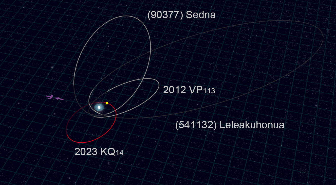 该天体被正式命名为 2023 KQ14,是继塞德娜(Sedna)之后发现的第四个同类天体,研究团队为其取了“菊石”(Ammonite)的昵称。