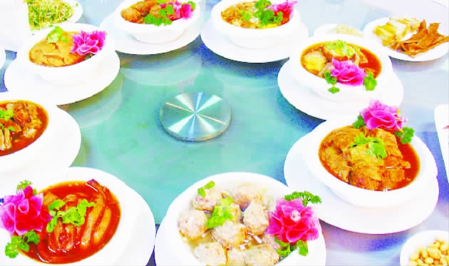 古堡寻味,蔚县首选。用当地泉水和大豆制成的豆腐干,筋道紧实,配上绿豆芽、粉条和黄瓜丝凉拌更爽口;五花肉切丝和豆腐干、韭菜搭在一起,是吃黄糕很配的一款“沾糕菜”。丝子杂烩、火靠肉、隔墙肉、虎皮丸子、红烧丸子、清蒸丸子、酥肉、喇嘛肉——蔚县八大碗,更是著名的省级非遗美食,不容错过。