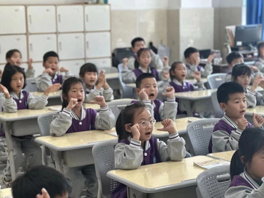 一年级3班“青葵班”以“向阳而生、快乐成长”为口号,将习惯养成融入细节:课前,学生们念着“书本文具摆整齐,等待老师来上课”的儿歌,快速把课本、作业本、文具盒按“左书右具”的顺序摆好;读书时声音洪亮如“小喇叭”,左手压书、右手指读,专注度高;写字时牢记姿势要求,老师巡视指导时主动调整;路队展示中,学生们保持前后半臂间距,步伐整齐,无一人掉队。