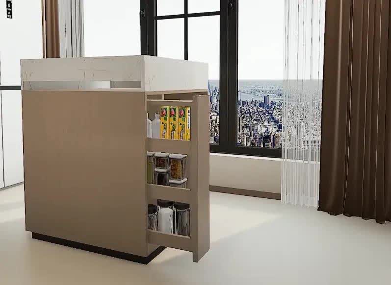 侧边做了抽拉柜,油、盐、酱、醋全放这,炒菜时拉出来就能用,不用来回跑餐厅和厨房,省时又省力。