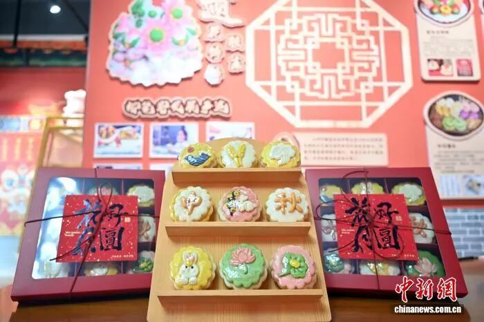 中秋节来临之际,人们互赠月饼、瓜果等,代表着亲友间诚挚的祝福。造型丰富的月饼,亦承载着有关中秋的美好记忆。