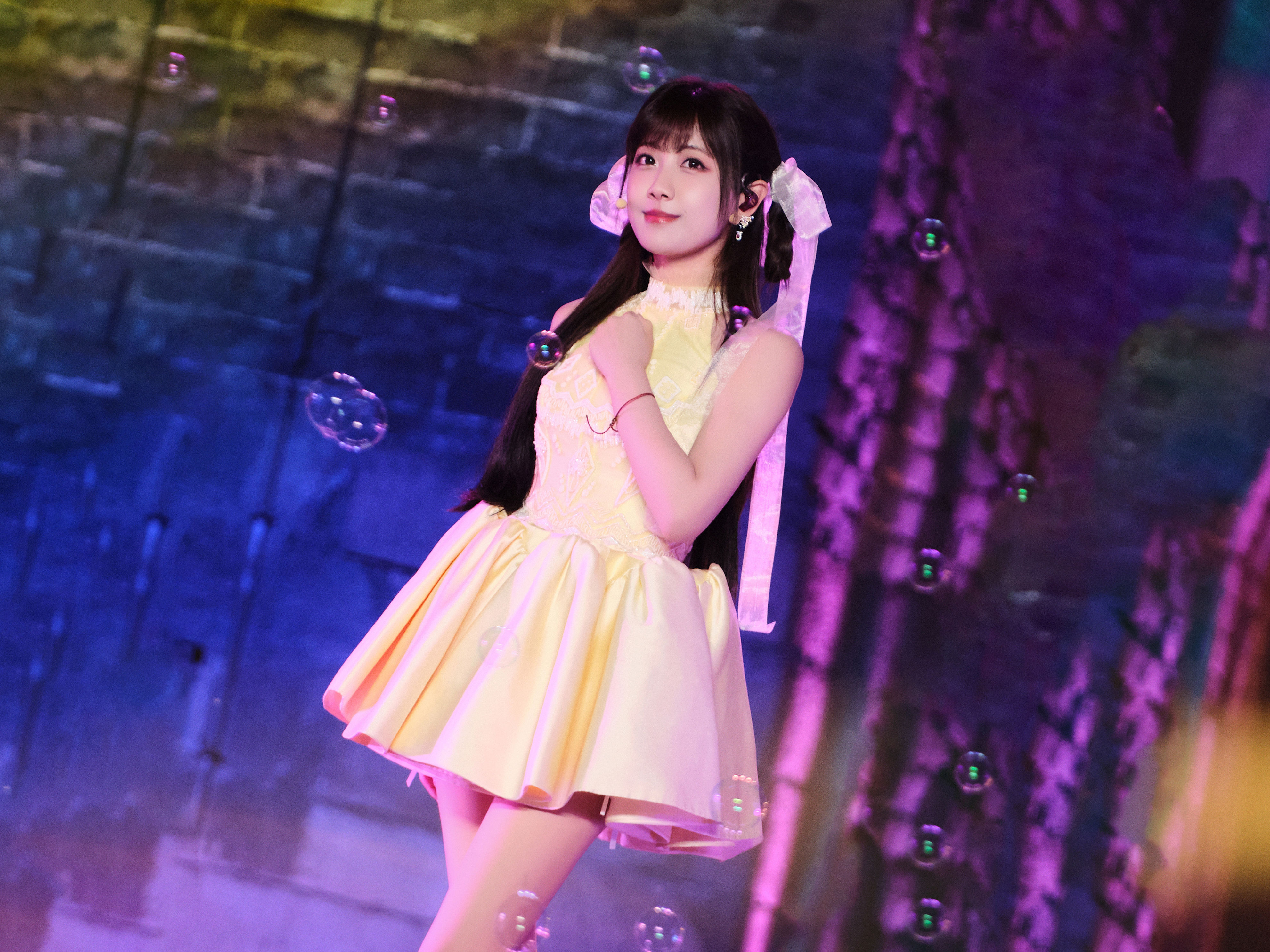 在舞台灯光下,这套穿搭将清甜与梦幻交织,每一个细节都在诉说着少女的烂漫心事,仿佛从童话里走出的精灵,在泡泡与光影中绽放魅力。