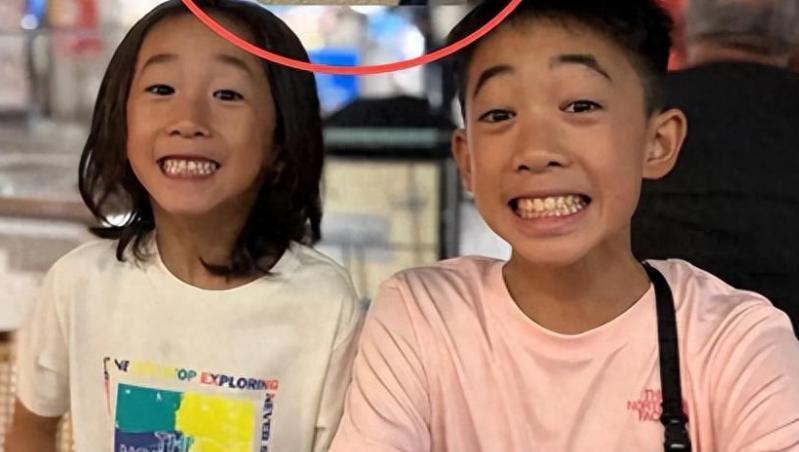 照片中两个孩子明显晒黑了不少,模样上简直跟自己的亲爹一模一样。