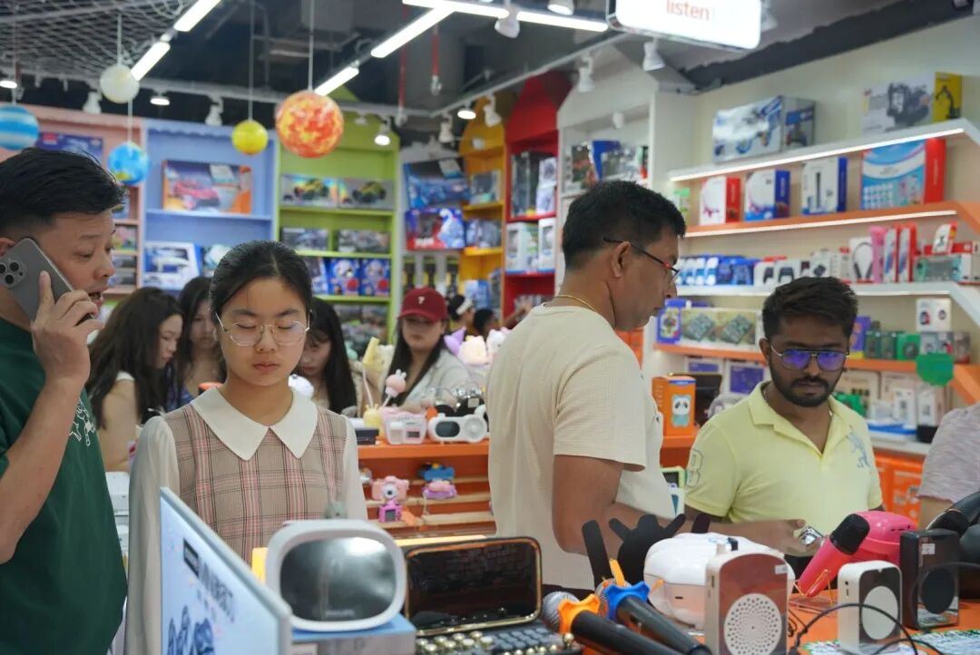为了接住国际客流,华强北商户使出了“十八般武艺”。除了为商品加上双语标识、学习简单英文、用计算器上的数字与外国顾客交流之外,记者注意到,许多商户还“就地取材”,用自己售卖的AI翻译机向外国顾客介绍更多商品细节。
