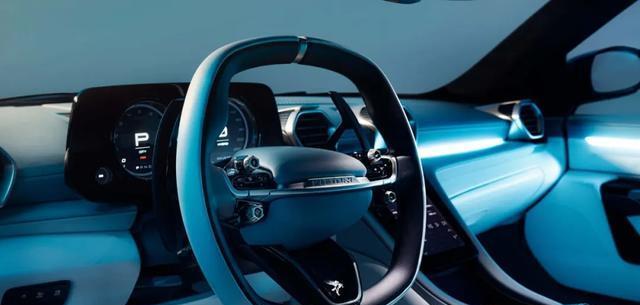 Turbio的内饰也散发出浓郁的迈凯伦风格。中控台上垂直排列的触摸屏,上方还有两个出风口,主副驾之间有一条隔断。方向盘后面是一个数字仪表盘。