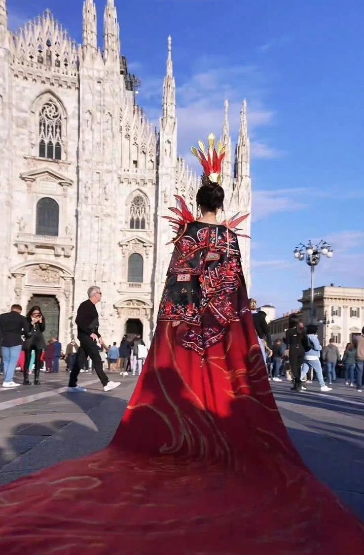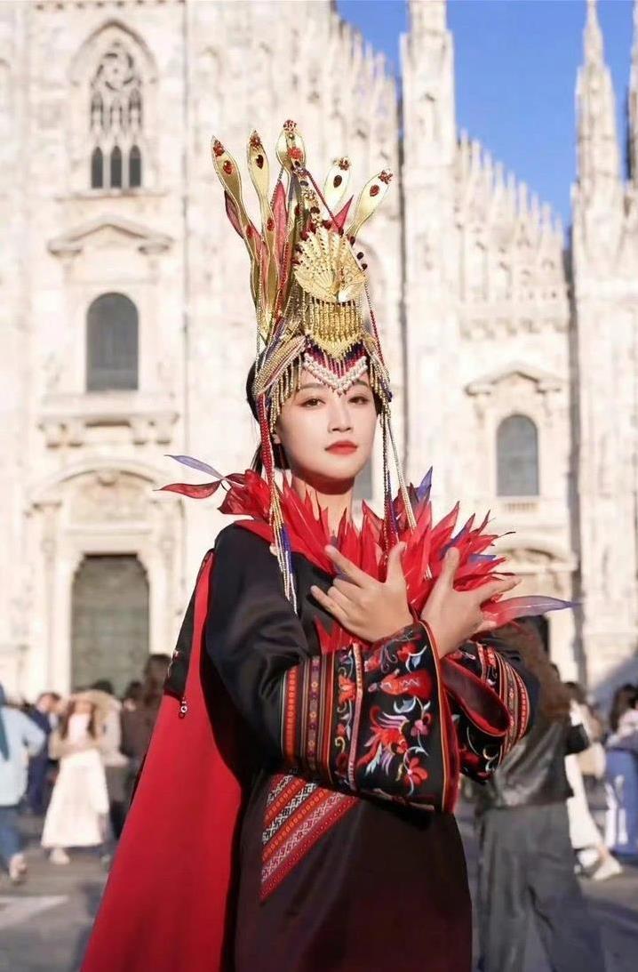 畲族凤凰装闪耀米兰街头,365颗银铃诉史诗,外国观众看呆了?