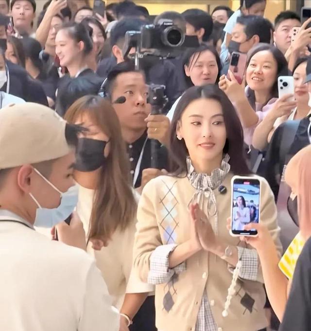 活动现场,张柏芝刚现身就被早已等候的粉丝围得水泄不通,大家纷纷举起手机拍照,欢呼声不断。面对粉丝的热情,张柏芝没有丝毫慌乱,反而停下脚步,双手合十向四周的粉丝鞠躬致意,嘴里不断说着 “谢谢大家”,笑容亲切温暖。随后在与主持人互动环节,她表现得从容大方,面对主持人提出的关于品牌理念、日常穿搭心得等问题,都能条理清晰地回答,偶尔还会分享自己的小趣事,临场反应能力极佳,完全看不出紧张。
