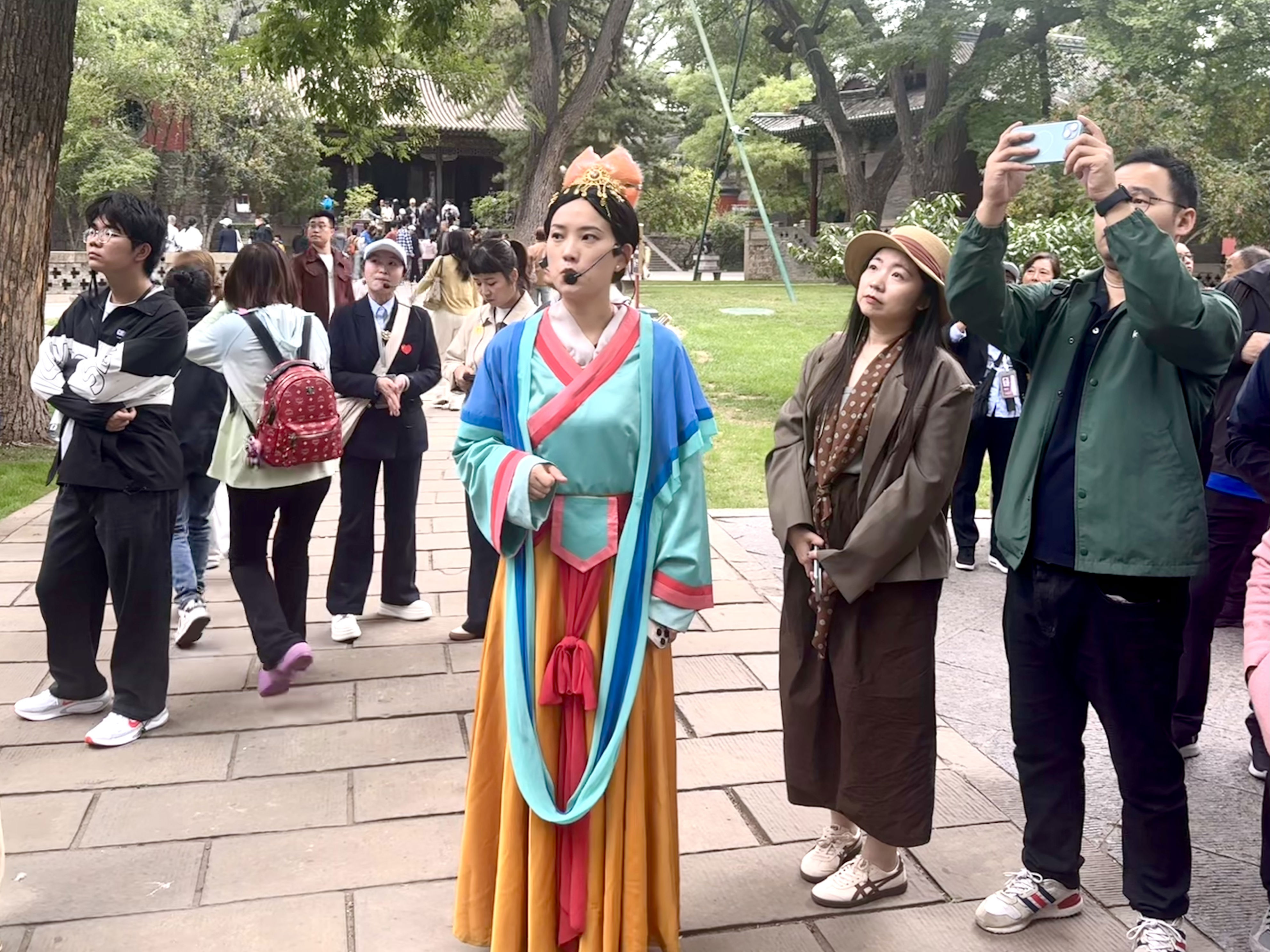 这座拥有三千年历史的祠庙园林,以其开阔的空间和宁静的氛围,成为年轻人的心灵栖息地。而晋祠博物馆在节庆期间推出的“盲盒式宋代侍女讲解”,让九位身着宋服的讲解员以第一人称讲述历史,更令穿越时空的对话变得真实可感。