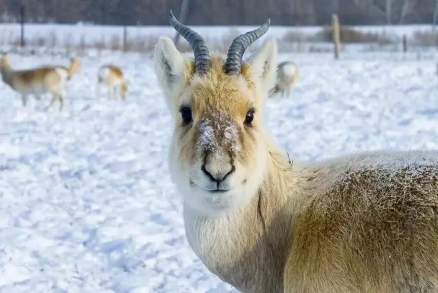 工作人员会定期清理积雪,并设置临时投喂点。当黄羊大军一到,立马就能纵享内蒙古草场的美味了。