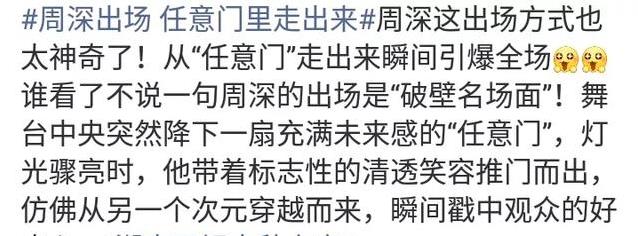更绝的是他在湖南卫视的出场方式——从“任意门”里走出来!这创意一出,全场都沸腾了!网友直接在网上刷屏,喊着“周深这出场太会玩了”!这“任意门”不光是好看,还让人感觉他像是从月宫穿越来的,带着满满的中秋节日感。
