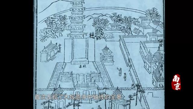 17世纪初期,状元朱之凡在编撰《金陵四十景》时,将大报恩寺塔收录为第三十五景,并取名为 “报恩灯塔”。在这幅画像上,首次出现了大报恩寺中轴线的全景。