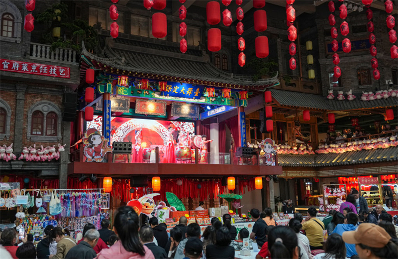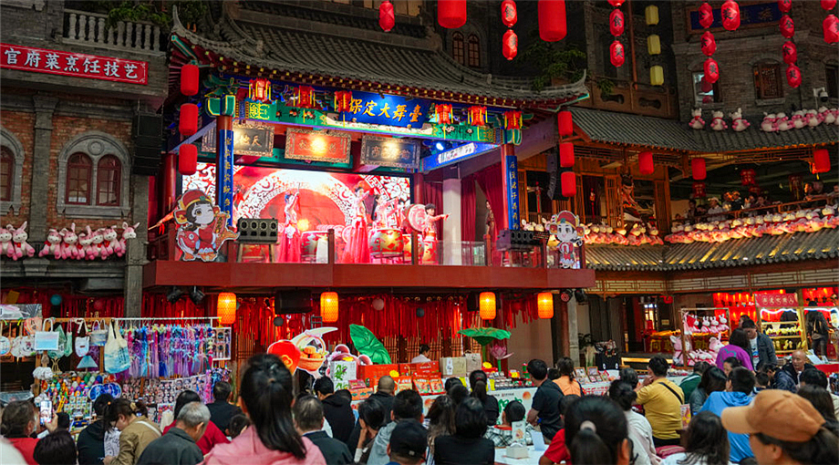 10月5日,游客在保定宴饮食博物馆观看演出。 国庆节假期 保定宴饮食博物馆 非遗展演精彩纷呈 成为假期热门打卡地 10月5日,游客在保定宴饮食博物馆体验吹糖人技艺。 10月5日,游客在保定宴饮食博物馆观看演出。 10