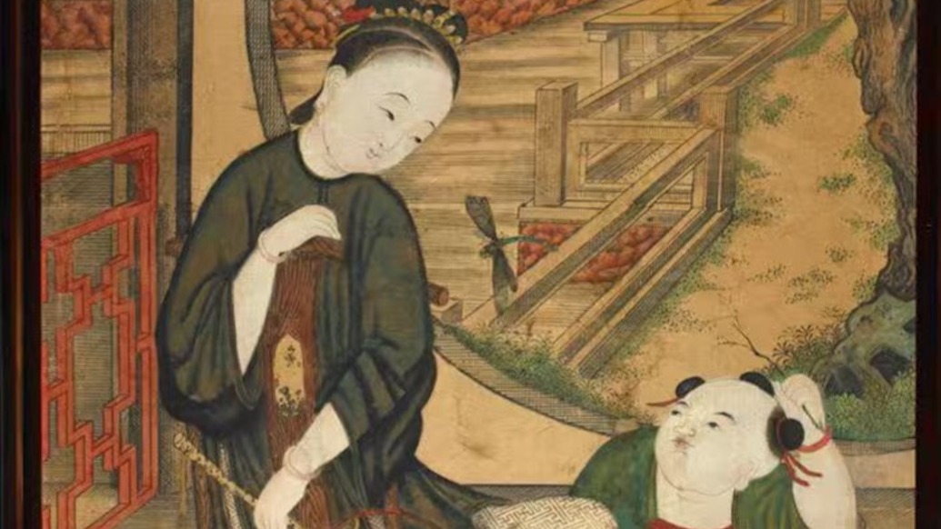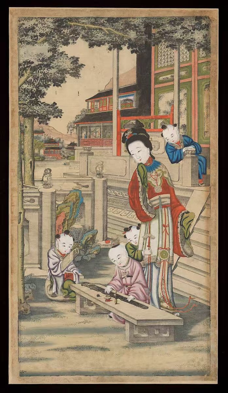 《姑苏美人-夏日亭畔母子图》,107x57cm, 克利夫兰艺术博物馆藏
