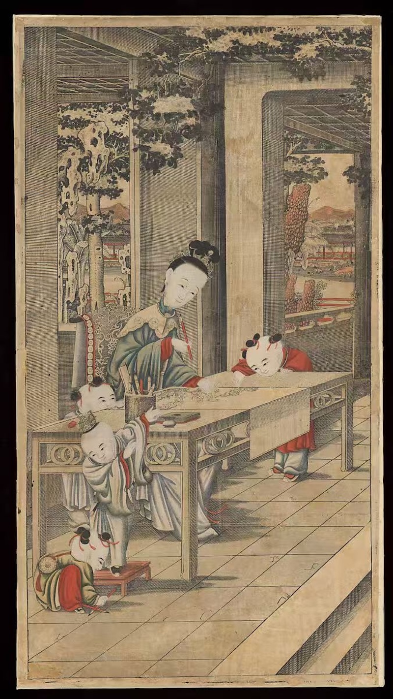 史明理:冯德保先生的收藏囊括了十八世纪套色版画的各种类型、形式与题材,使克利夫兰和大都会艺术博物馆得以向公众全方位地展示这一艺术门类。许多版画仿效更为昂贵的绘画的形式与技法,例如画上附有题诗和落款。这批版画的题材各种各样,包括古器、建筑景观、园林、城市风景、山水名胜、名媛仕女、花鸟、游戏、以及戏曲、小说故事和诗歌插图。尽管版画可以大量印制,但因其价格较低,一旦褪色或破损,往往就被弃置,所以存世的版画数量很小。这一批藏品中有些尺寸很大,有些装裱成挂轴。而丁氏工作坊的花鸟版画差不多是册页的大少,其中一些是现存孤品,例如克利夫兰博物馆的《姑苏美人--夏日亭畔母子图》,就是唯一存世的例子。