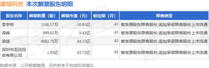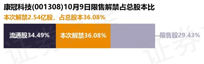 康冠科技(001308)2.54亿股限售股将于10月9日解禁,占总股本36.08%