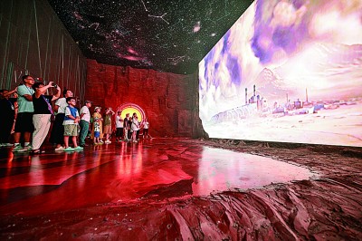 近日,位于海南文昌的文昌航天科普中心升级改造工程进入收尾阶段,并短期向公众免费开放,以检验场馆运营能力与服务水平,为后续正式开放奠定基础。该中心依托中国文昌航天发射场的区位优势,以“星辰大海·文昌启航”为主题,系统展现中国航天从追梦到圆梦的辉煌历程。经过本次改造,该中心的展陈内容升级为覆盖航天历史、火箭发射、空间科学、未来探索等多维主题的沉浸式体验体系。图为10月7日,游客在文昌航天科普中心参观。