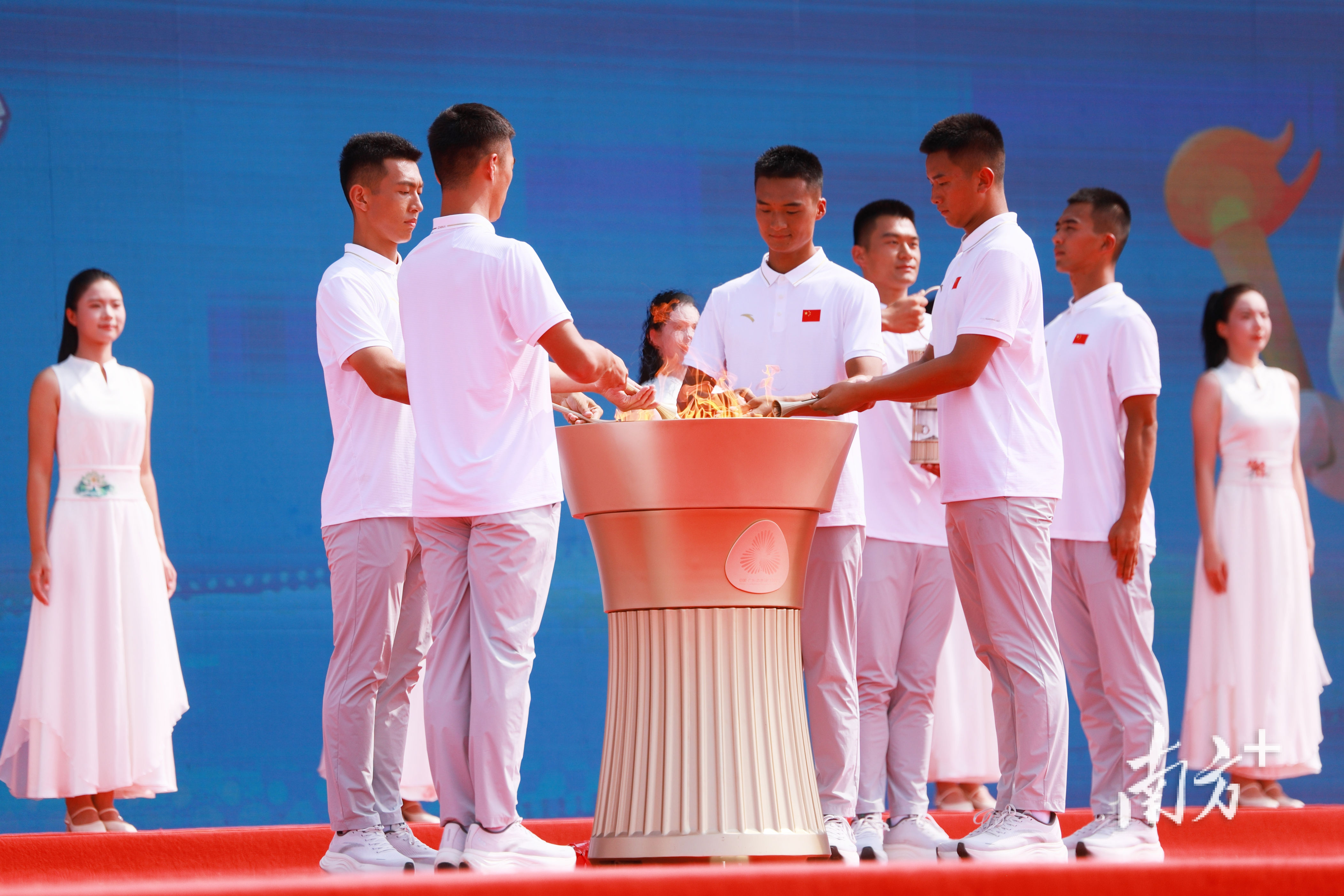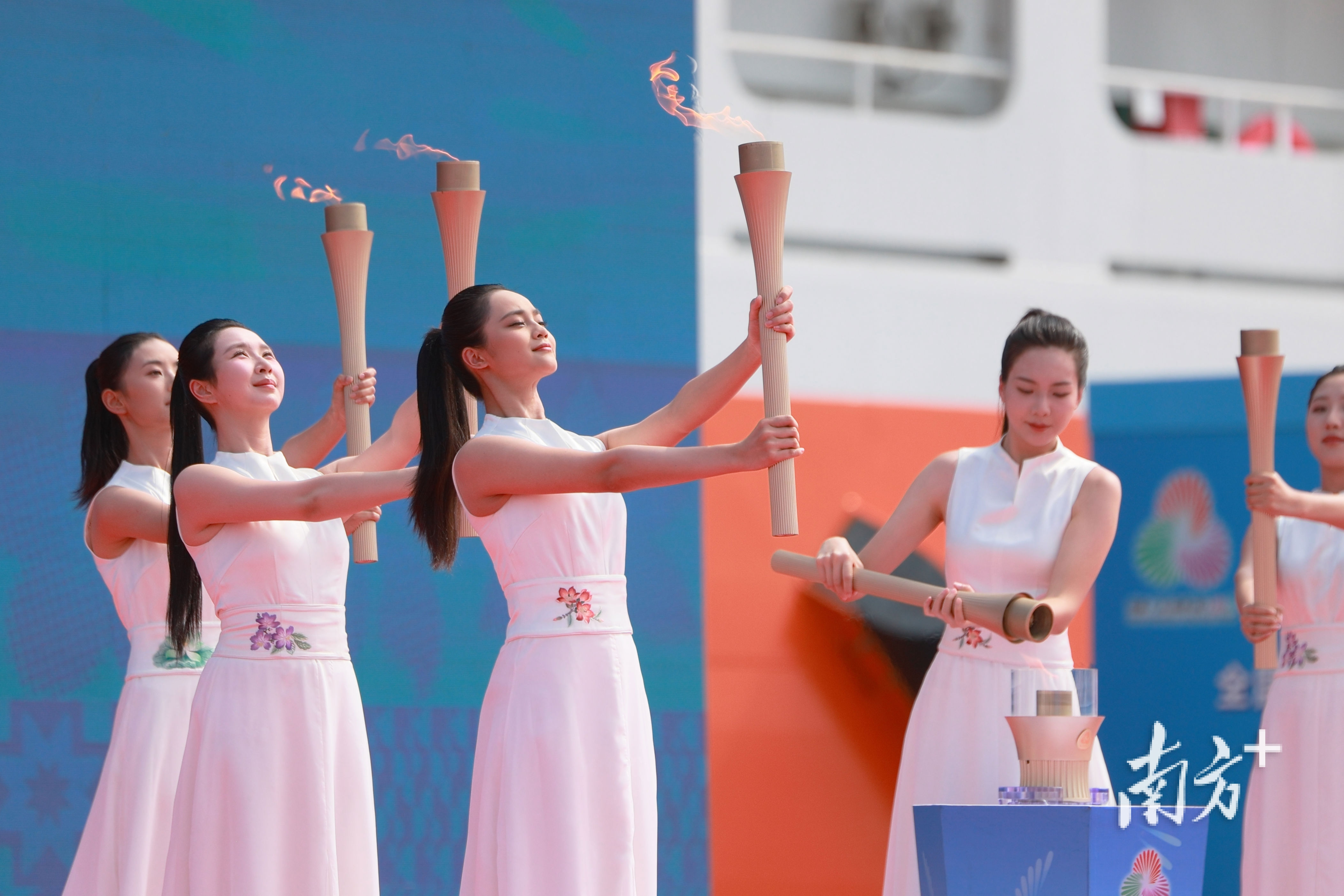 上午10时,第十五届全国运动会和全国第十二届残疾人运动会暨第九届特殊奥林匹克运动会火种采集仪式在广州市南沙区的广州海洋地质调查局科考码头举行。