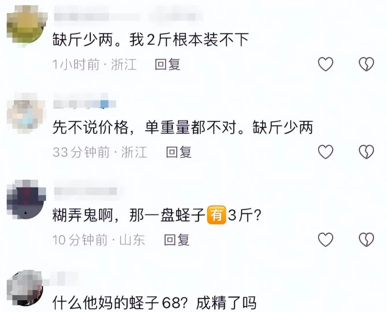 等菜端上桌,份量与菜单上的斤数对不上,皮皮虾内黄发干,蟹肉无水发柴,很多人怀疑有“偷梁换柱”之嫌。