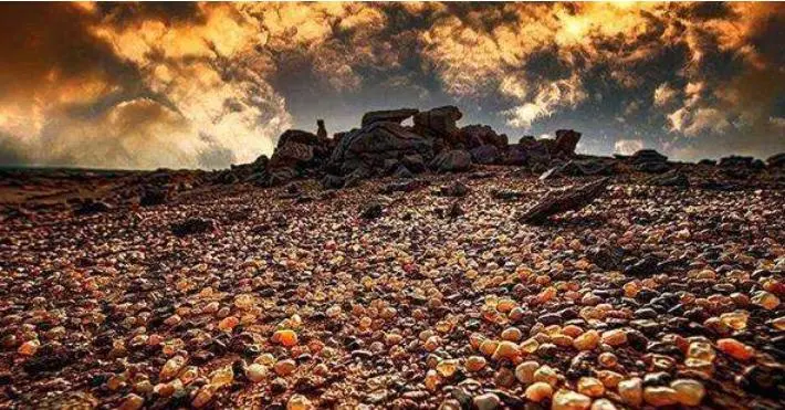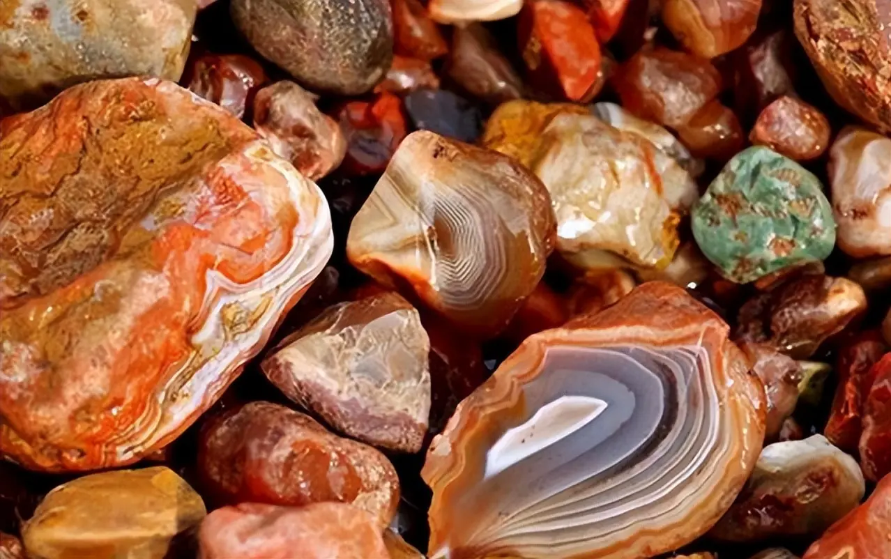 风化使玛瑙和碧玉从玄武石中释放出来,散落在荒漠上。狂风暴雨又成为搬运工将它们带入湖中。