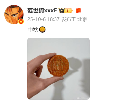 对于范世錡身体的具体状况,工作室并未透露。据悉,10月6日,范世錡还曾更新微博,分享手持月饼的照片庆祝中秋。