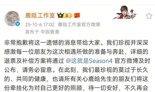 鹿晗工作室致歉!身体状况已经不能再继续演唱会!