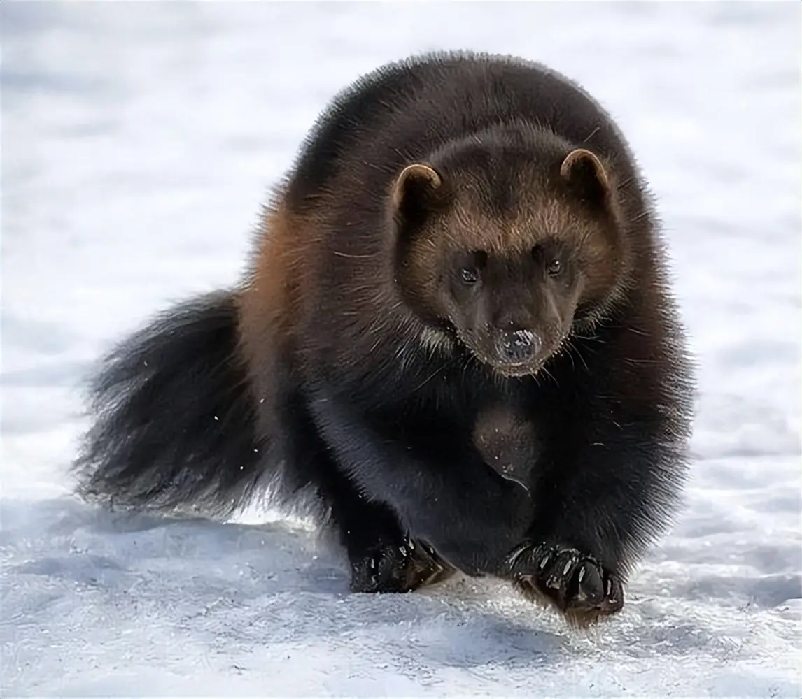这是貂熊,又名狼獾。在东北地区是不折不扣的“凶兽”,因为什么都敢去硬碰硬,脾气也大,有时候连熊都得避着它走。