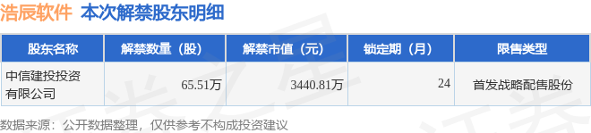 浩辰软件(688657)65.51万股限售股将于10月10日解禁,占总股本1%