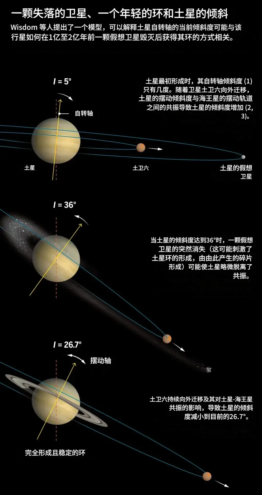 为什么一个巨行星的自转、环、卫星系统都如此“歪斜”?Wisdom的答案是:因为它曾经多了——也失去了一颗——卫星。