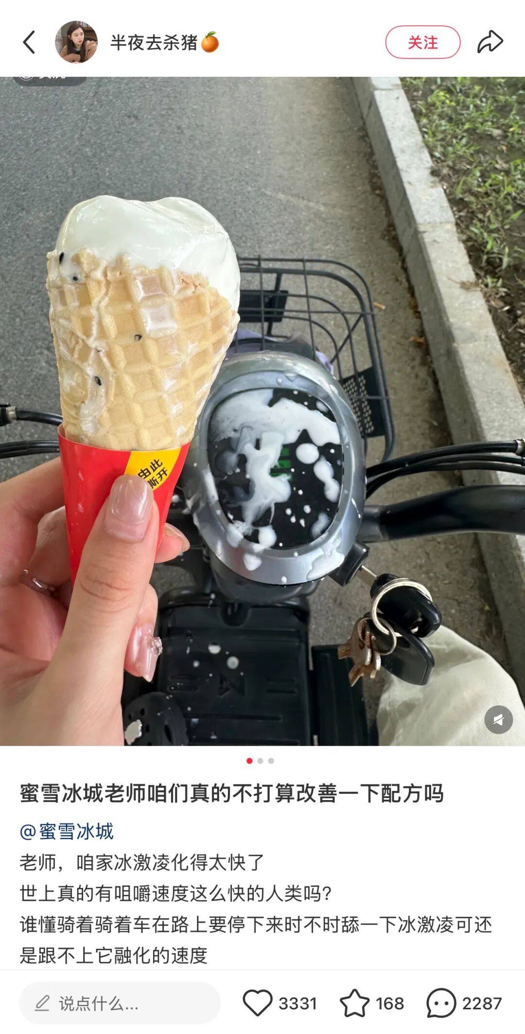 一位网友在社交平台的如此发言获得了颇多点赞和评论:“当年骂钟薛高烧不化,现在又嫌蜜雪冰城化得快,你们到底想要冰淇淋咋样啊?”