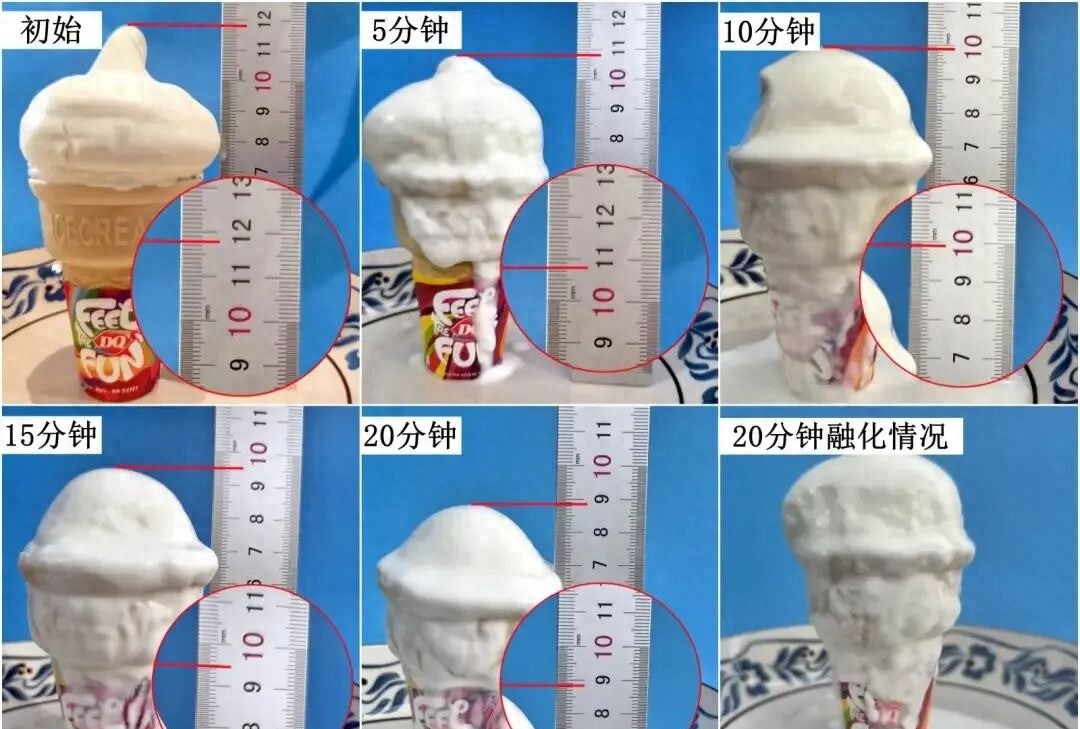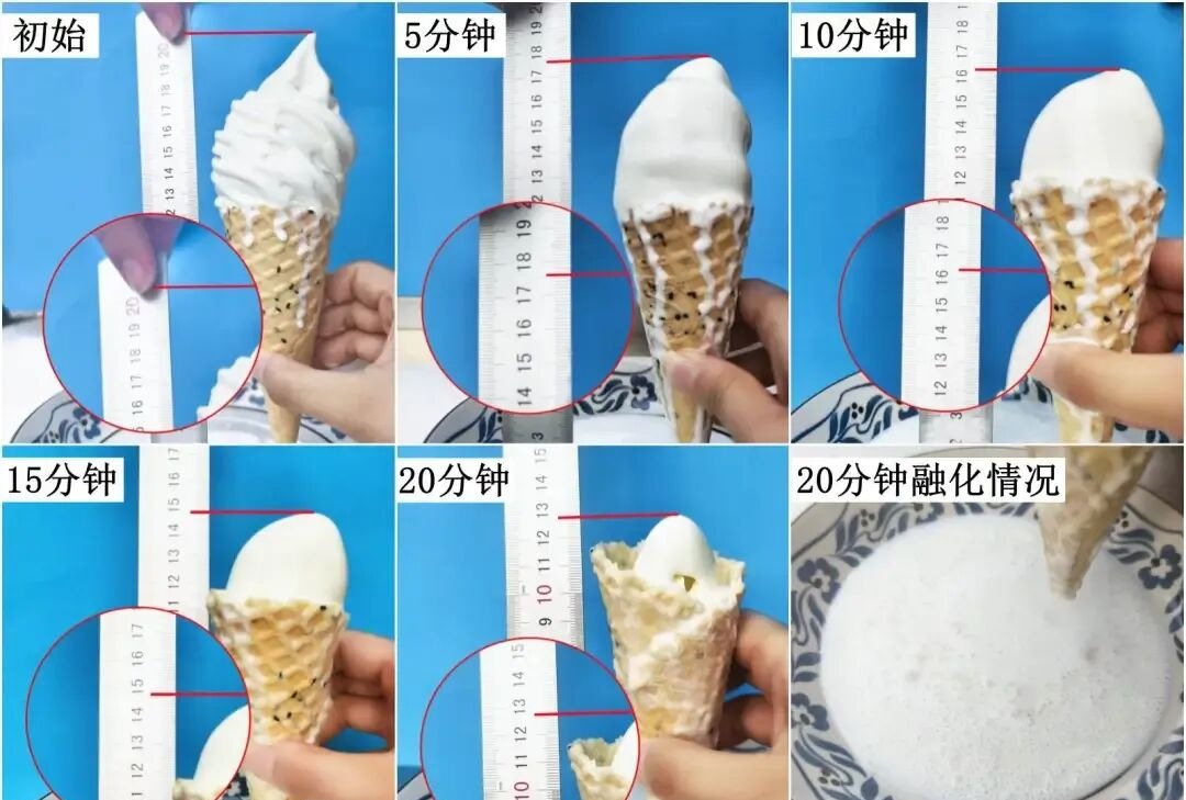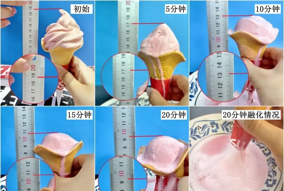 因为在大多数人的认知里,冰淇淋遇热融化是物理常态,可一旦偏离“快了嫌不抗化、慢了疑有添加” 的模糊标准,“这是不是加了太多添加剂” 的疑问便会立刻涌上心头。