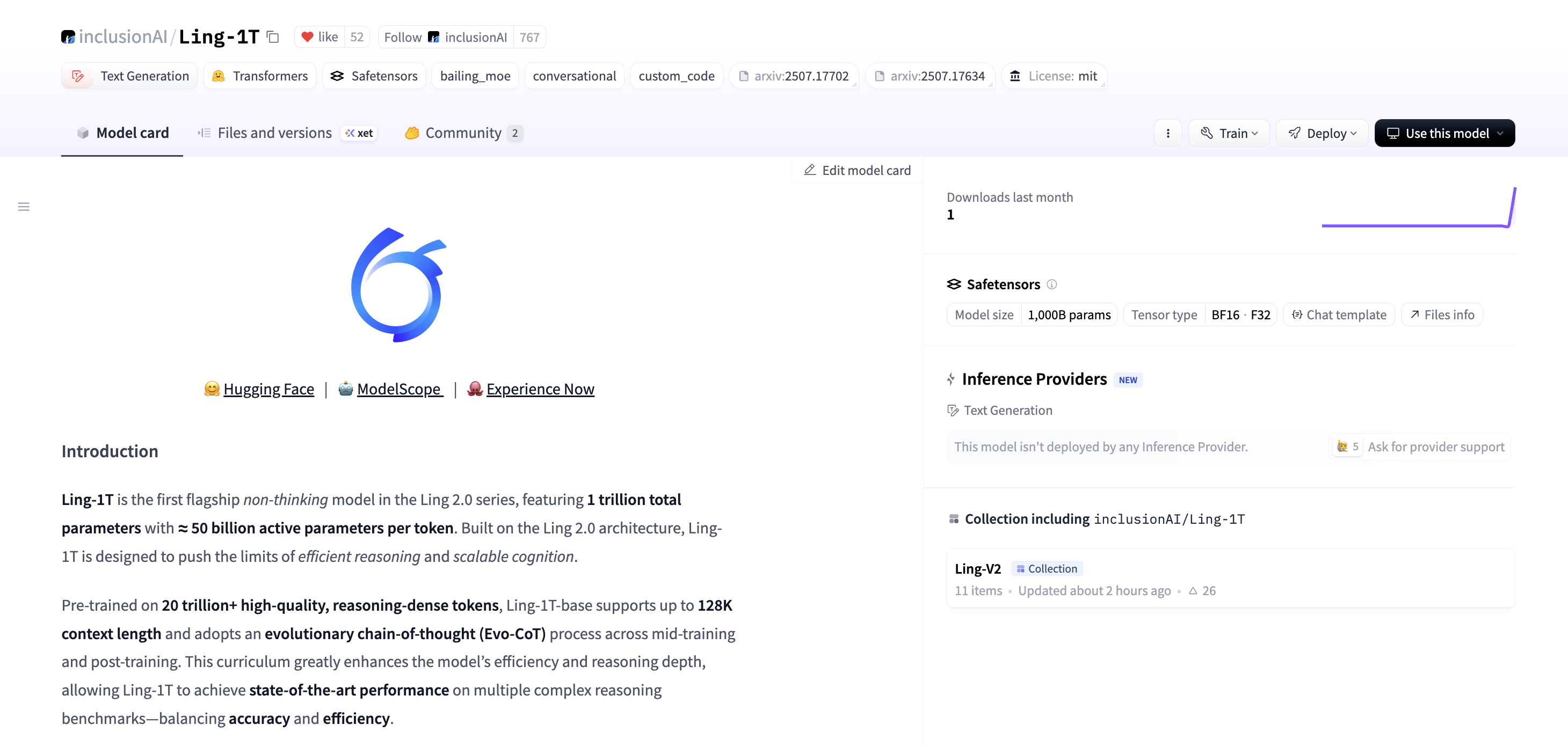 HuggingFace:https://huggingface.co/inclusionAI/Ling-1T