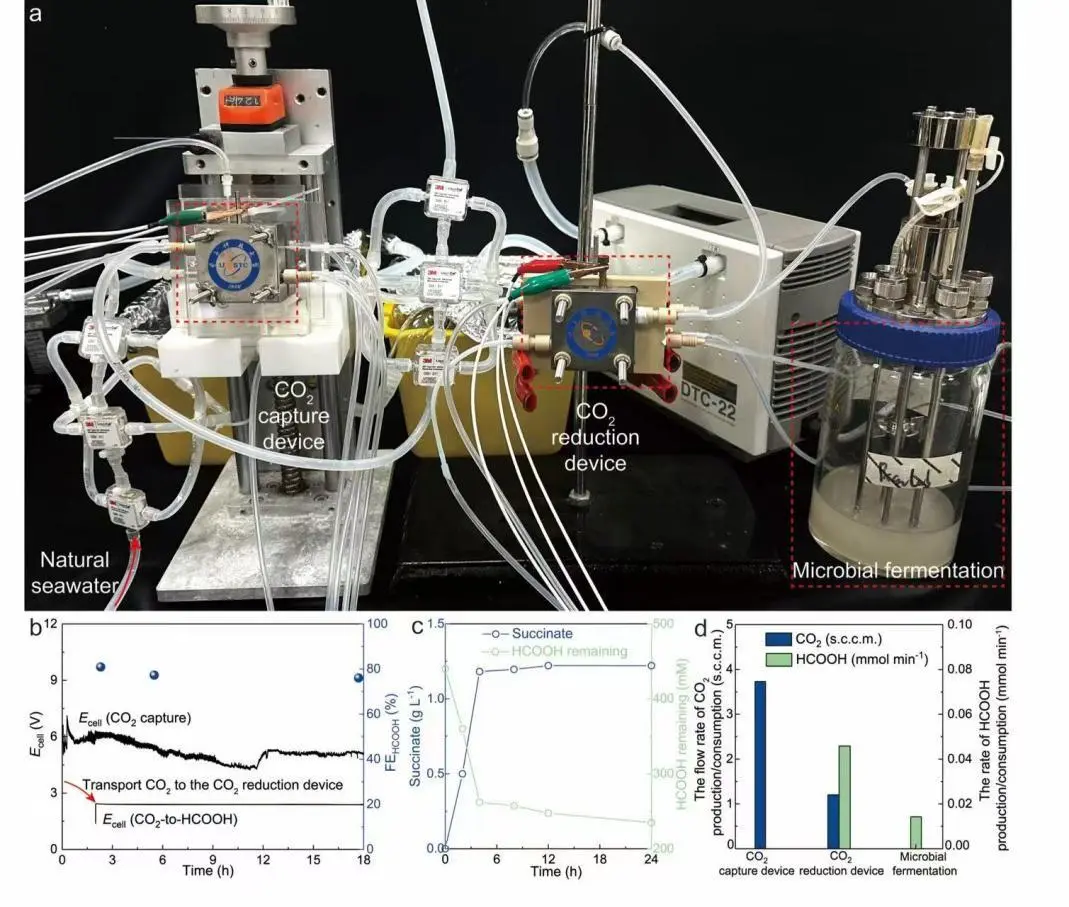 不过,光把碳从海水里捕出来还不够,怎么把它变成能用的东西?中科院深圳先进院高翔团队,就解决了这个最后一公里的问题。