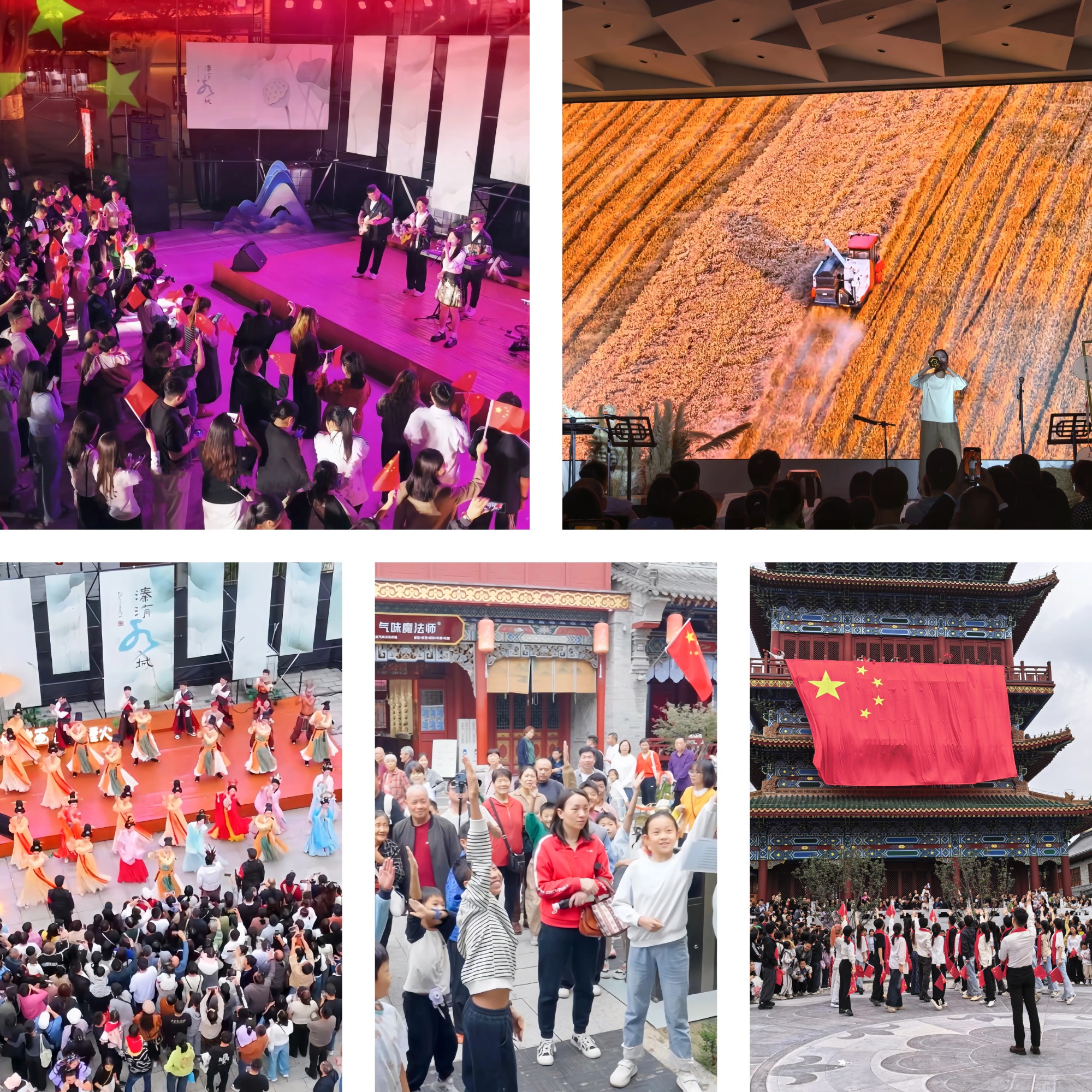 市集音乐派对上,全民高歌国庆主题曲,唱响了“集体浪漫”的欢乐乐章;国家级演出《中国声音·二十四节气》将传统乐器与现代舞美融合,呈现出一场视听盛宴。此外,“诗经坊互动”以诗为媒,再现诗经典故;“古韵新潮-舞动山河”、“关雎琴歌”、“古琴雅集”、“溱洧水秀”等一系列古韵演出,更是让静态的文化遗产“活”了起来。