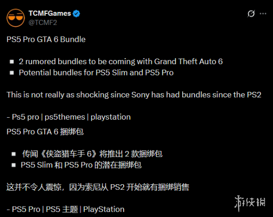 与此同时,游戏资讯博主TCMFGames也转发了相关爆料信息,并展示了粉丝自制的效果图——图中呈现了《GTA6》与PS5 Pro的定制捆绑包概念设计。