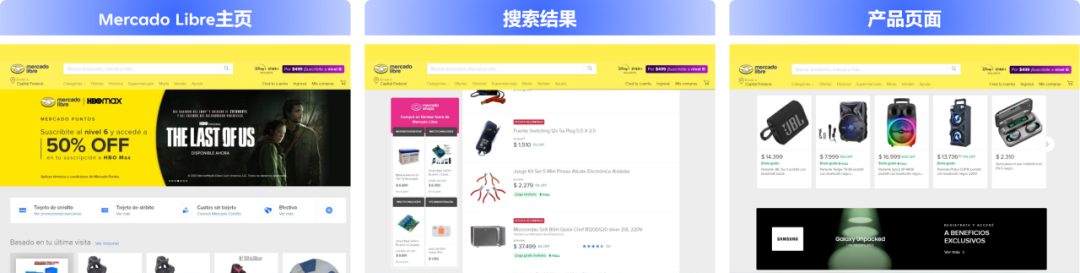 在美客多的广告生态中,展示型广告是唯一能够主动引流和触达特定用户的产品。借助海量真实消费者一手数据所构建的大数据体系,有针对性地出现在平台的核心广告位,例如首页、搜索结果页、商品详情页,以及美客多自有自营网站(像Mercado Pago)和第三方专区的广告位。