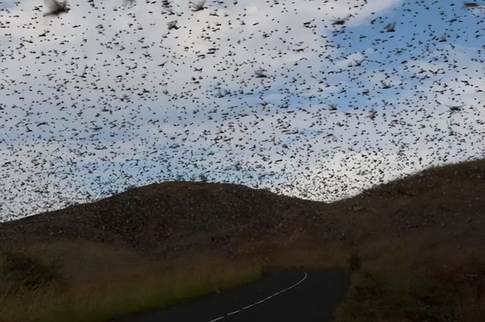 这种深绿色翅膀的蜻蜓是很多人没有见过的,随之而来的还有土黄色的蝗虫。