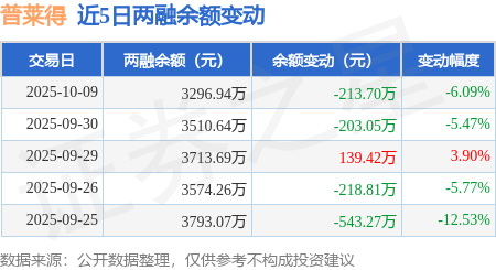 普莱得:10月9日融资买入506.55万元,融资融券余额3296.94万元