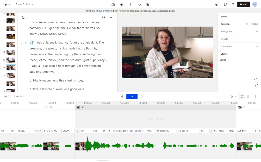 效率“外挂”:现在很多AI工具,比如Descript,可以直接把音频转成文字,你想删哪段,直接删文字就行,音频就跟着剪好了。Adobe Podcast AI还能自动去噪音,把你的录音棚音质都给整出来。这效率,简直是鸟枪换炮啊!