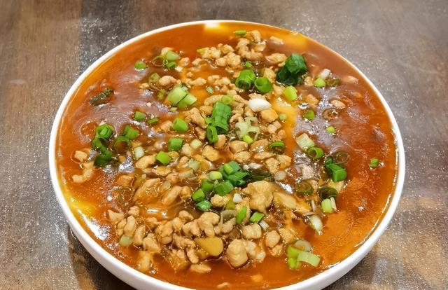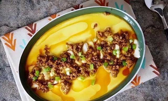 接着加入生抽、老抽、盐炒均匀,再加入淀粉水勾芡,煮到浓稠。最后将肉末盖在豆腐蒸蛋上,就可以食用了。趁热吃好舒服,超级解馋下饭,快尝尝。