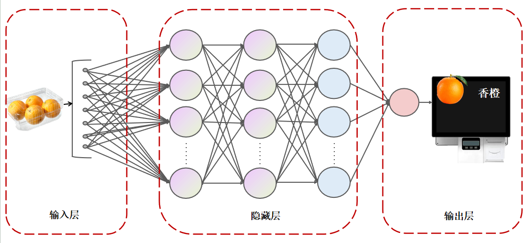 使用图像识别技术的AI视觉秤,拥有孙悟空般的火眼金睛。通过深度学习方法,学习海量图片后,AI视觉秤可以将待识别的商品特征和已学习过的图片特征进行比对匹配,完成图像识别任务。