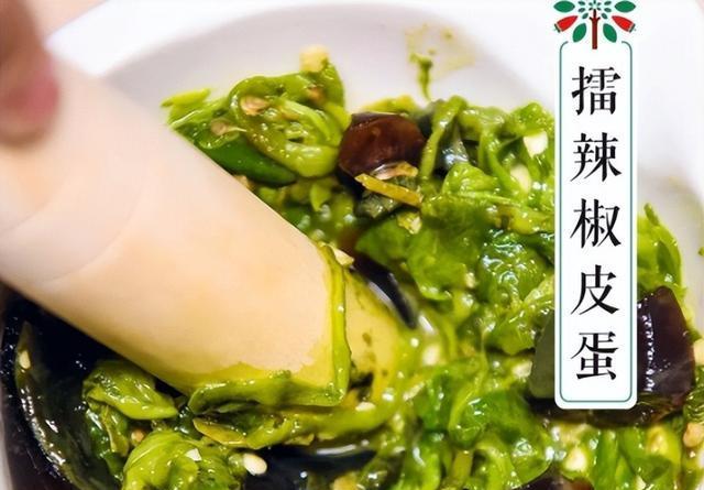青椒擂皮蛋也是湖南当地的一道特色家常菜,这道菜如今各大湘菜馆也有,虽然看起来其貌不扬,但是这道菜口感一绝。