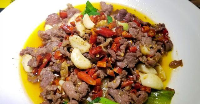 然后锅中放入油,将腌制入味的牛肉放入锅中爆炒片刻即可捞出,锅留底油,放入蒜头,辣椒干小米椒炒出香味,最后倒入牛肉,一起爆炒,牛肉鲜嫩爽滑,辣度适中,品尝一口后根本停不下来。