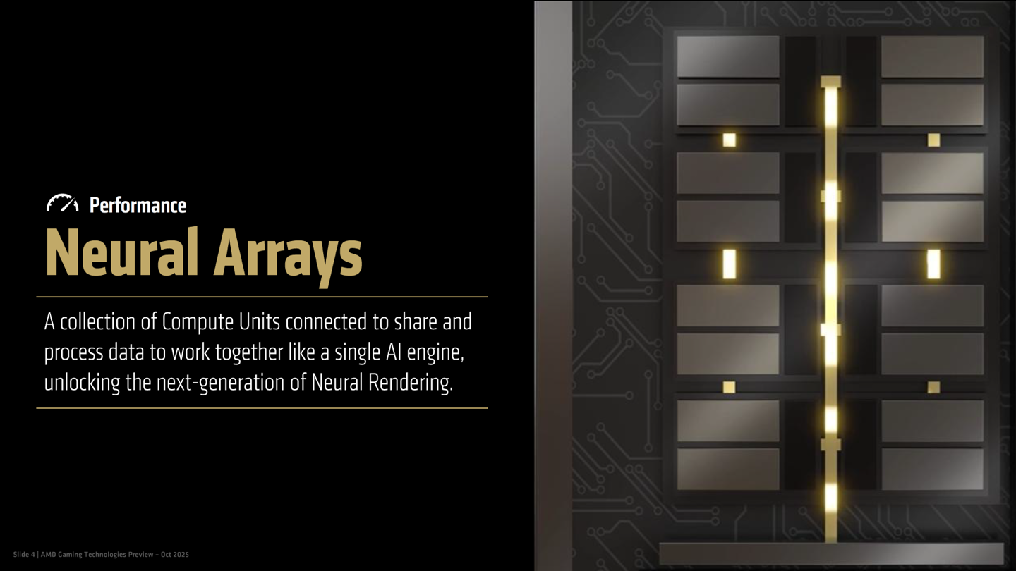 IT之家援引博文介绍,新架构的核心之一是“神经阵列”(Neural Arrays)技术,这是一种类似“无限总线”(Infinity Fabric)的 GPU 内部互连方案。该技术直接连接所有计算单元(CU),从而让其高效通信,实现“一次性处理大块屏幕数据”。