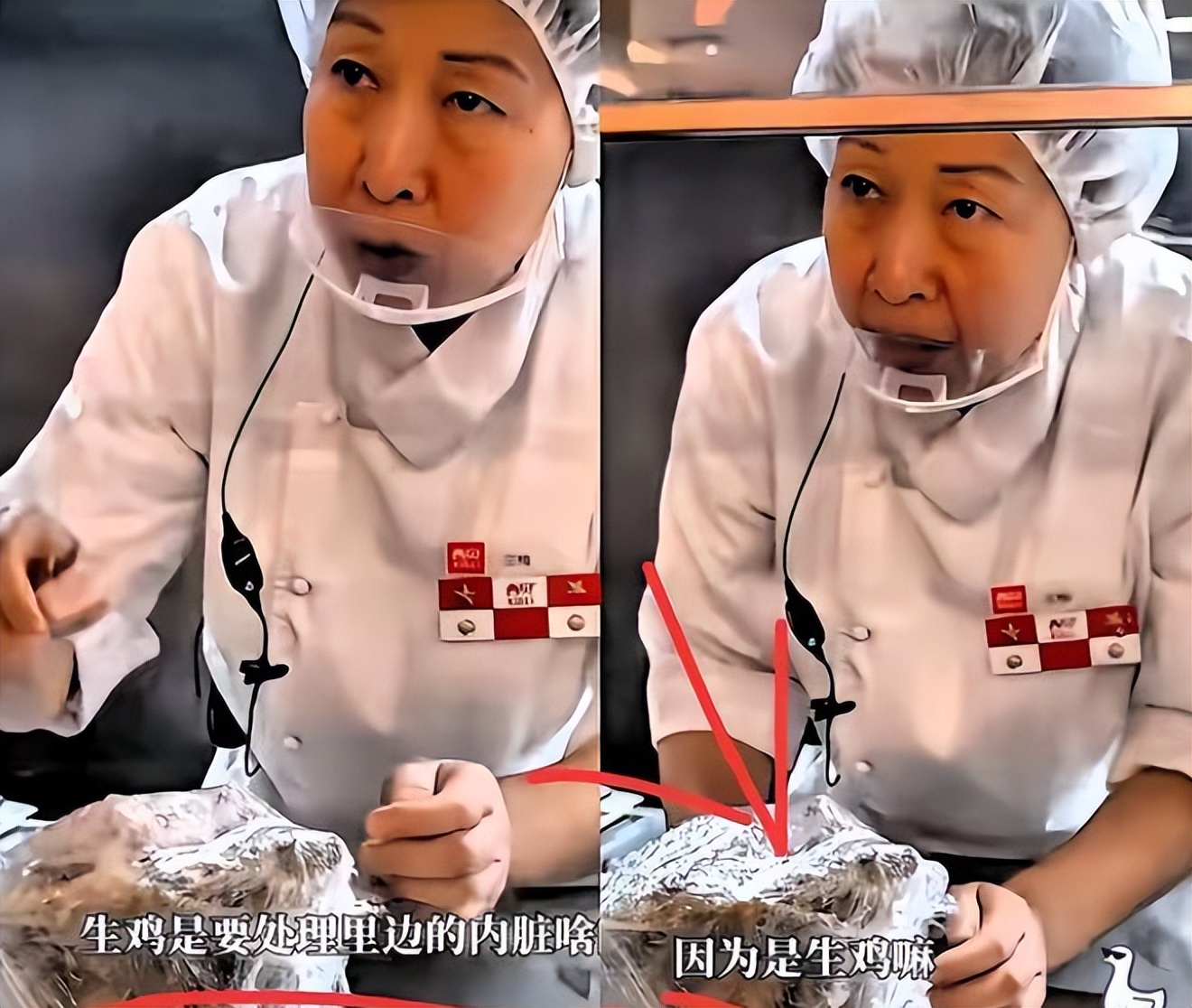 先是说早上加工了生鸡,可问到生鸡内脏去哪了,一会儿说 “丢垃圾桶里了”,一会儿又说 “顺着下水道冲走了”。两种说法完全对不上,一下子就被网友揪了出来。