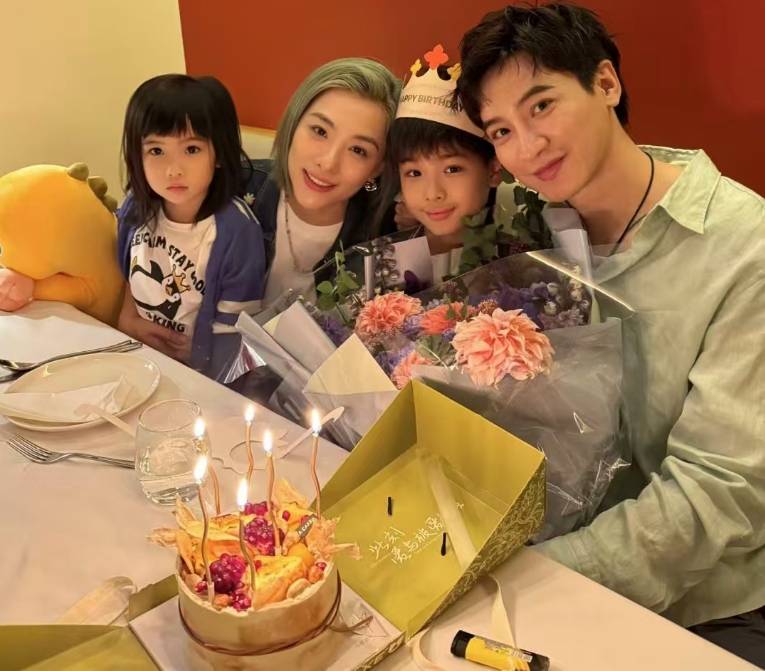 刘璇为儿子庆10岁生日,赳赳完美复刻爸妈高颜值,一家四口都好看