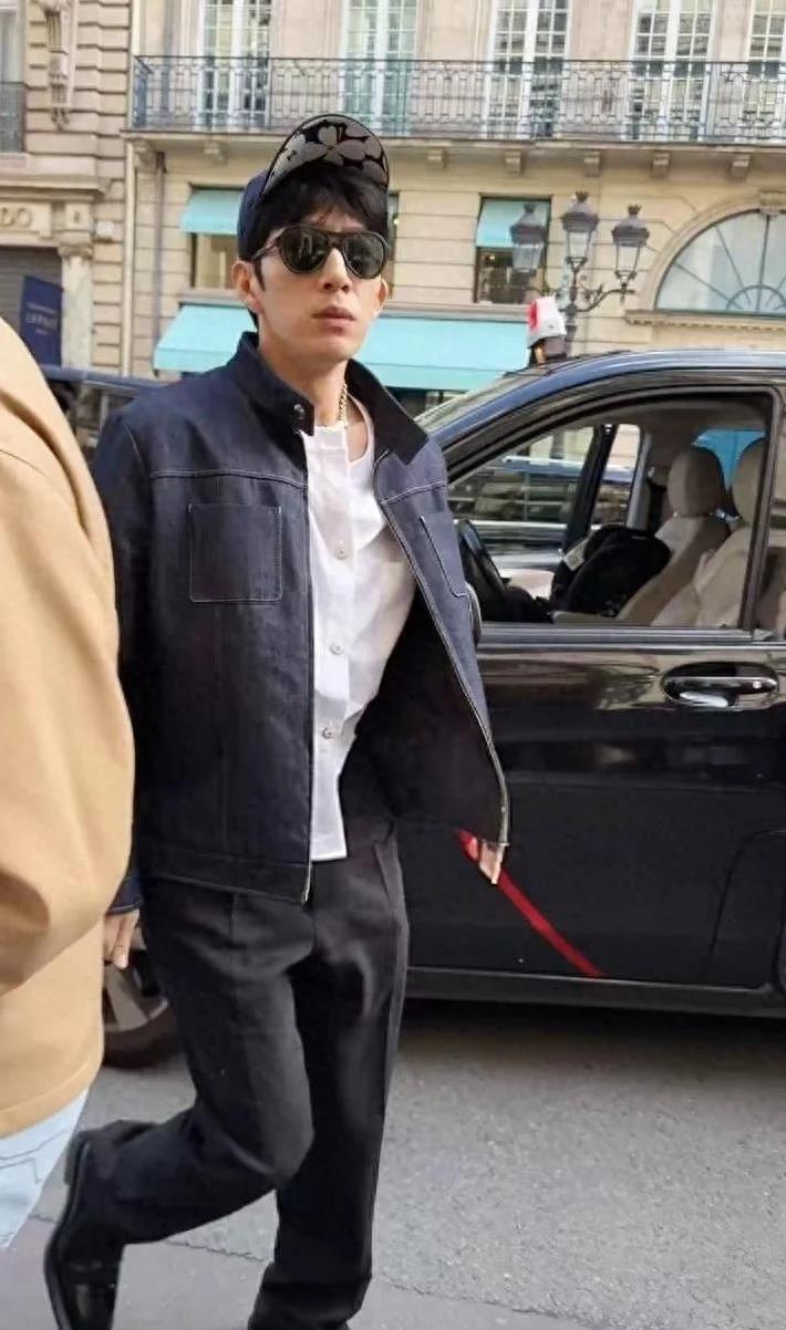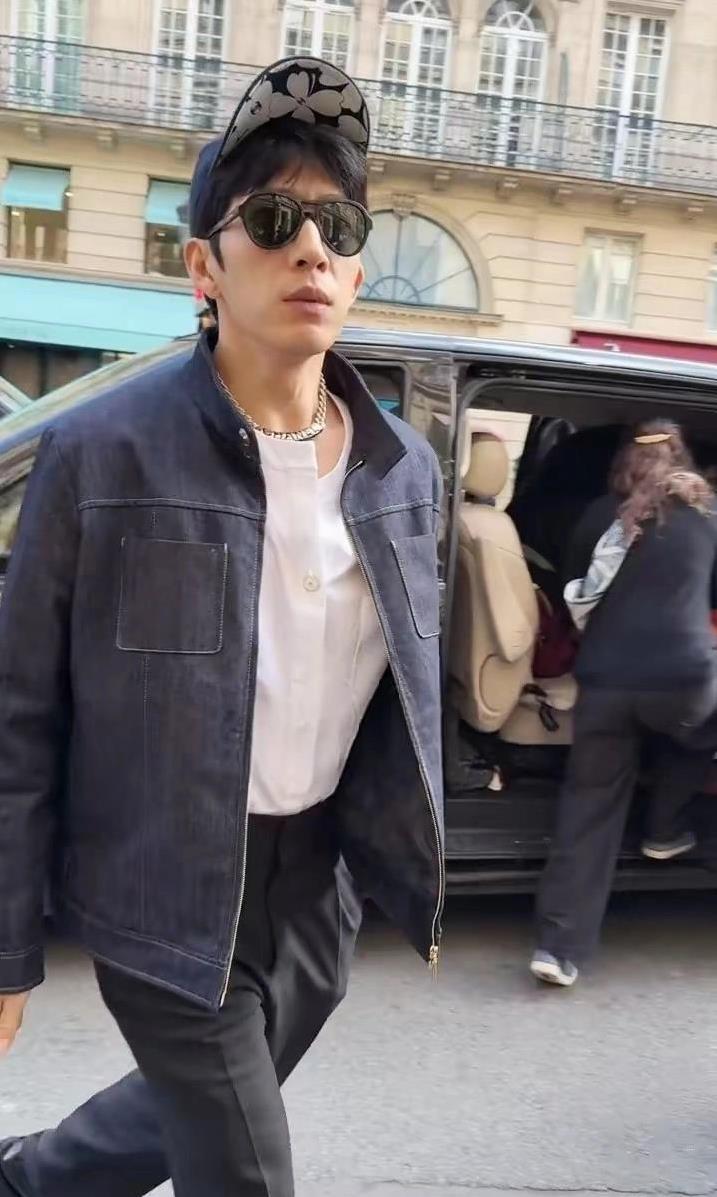 照片里,井柏然戴着棒球帽和墨镜,走路带点随性的味道。牛仔外套宽松却有型,T恤干净得像刚洗过,裤子和皮鞋搭得恰到好处。整个人站在巴黎街头,像是从杂志里走出来的,随手一拍就是大片既视感。