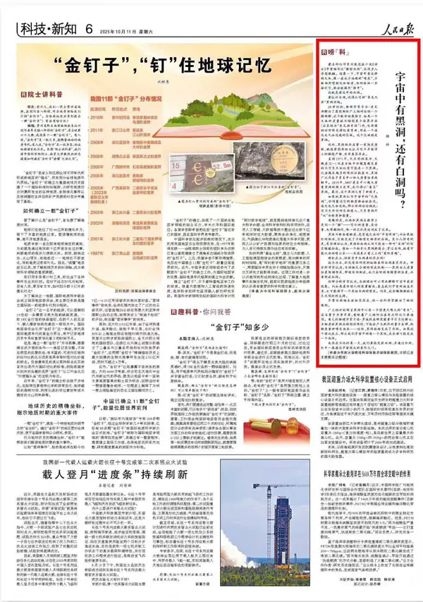 杨 科 著名科幻作家刘慈欣在小说《诗云》中曾描写过“微型白洞”,让很多人浮想联翩。想象一下,宇宙中有这样的天体,像一座永不枯竭的“喷泉”,不断向外喷射光和物质,任何物体一旦接近它,就会被猛烈“推开