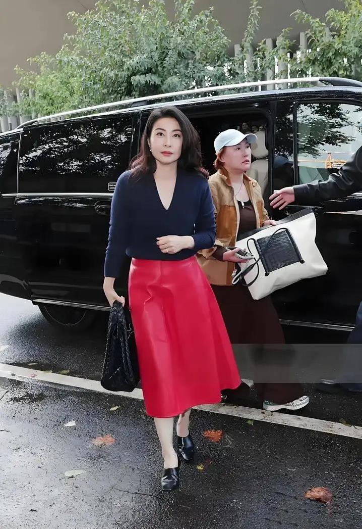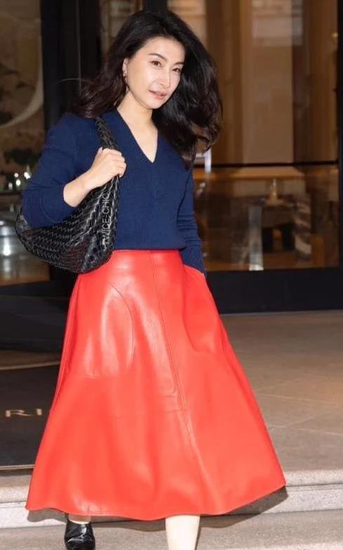 这场时装周,郭晶晶选的衣服特别有看头。蓝色V领毛衣显得脖子修长,红色皮裙看着既有活力又有点帅气,黑色小皮鞋让整套衣服更利落。这样的搭配,既时尚又接地气,完全没有花里胡哨的感觉。她的风格就像在说:我要美,但也要做自己!
